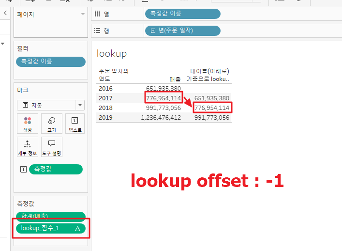- lookup : 현재 행 기준으로 offset 만큼 떨어진 행을 반환
