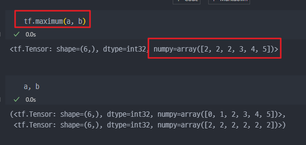 maximum: 같은 자리의 값중에서 큰 값들만 추출해서 다시 tensor를 생성한다.