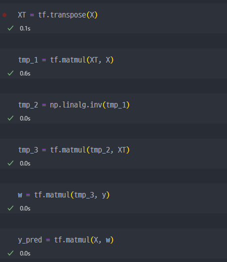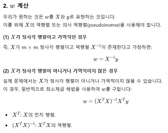 np.linalg.inv())- w 계산에서, X라는 행렬이 정사각 행렬이면 역행렬이 존재하여 바로 곱하면 되지만,