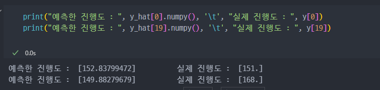 처음에 전치, 역행렬 계산을 통해 구했던 것보다, SGD 방식으로 학습하고 구현한 게 훨씬 정확도가 높은 것을 알 수 있다.