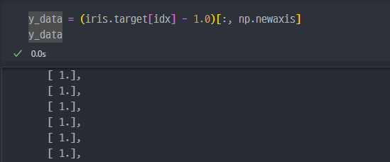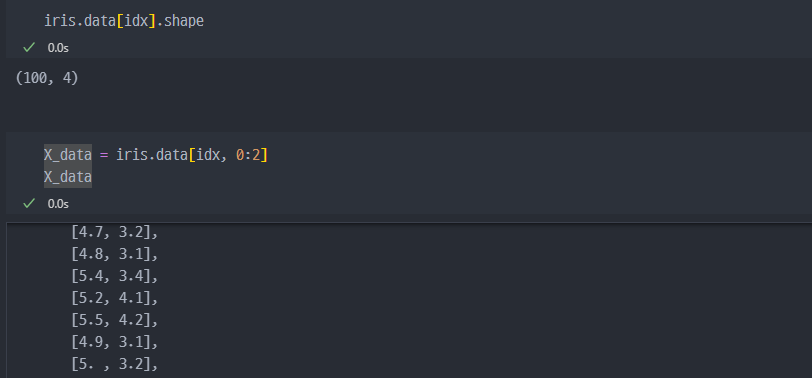 마스킹 진행해서, X_data에는 Sepal에 대한 특성정보만 저장. (Setosa 와 Virginica에 해당하는)