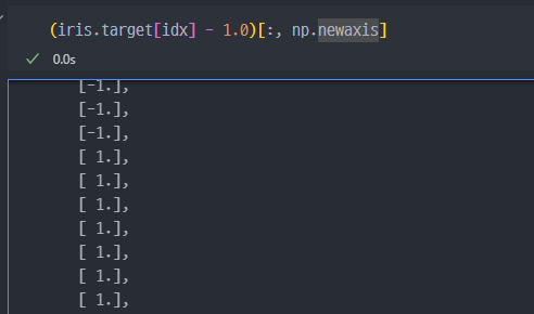 y 값에서는 0, 2로 분류되는 것들을 -1 과 1 로 변환하고