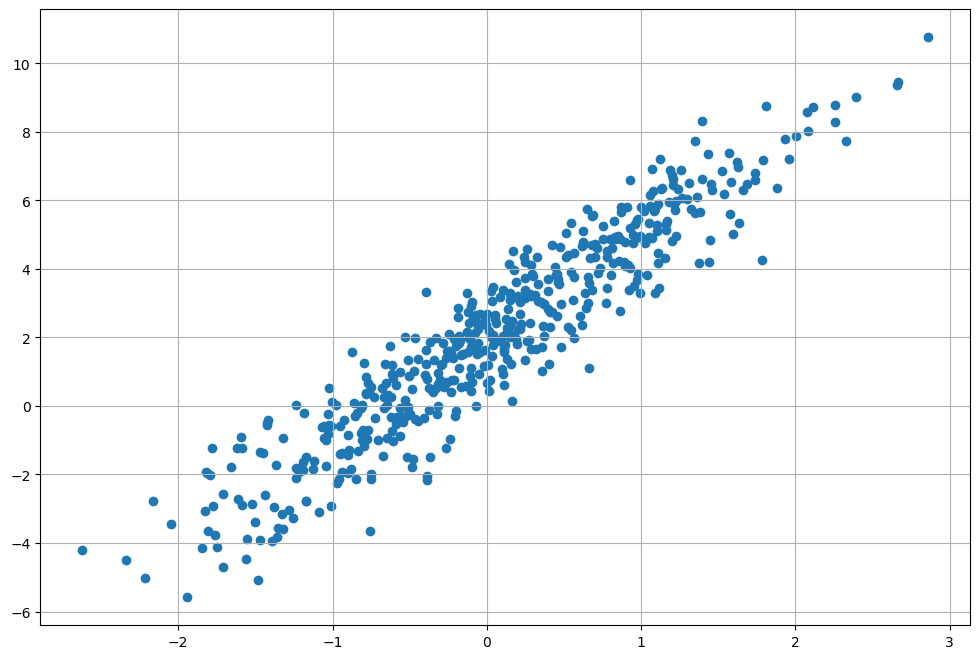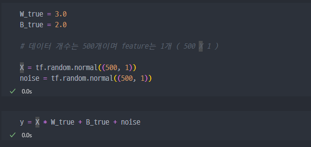 y = X * W_true + B_true + noise라는 그래프이다.W_true는 3,B_true는 2로 셋팅하였다.