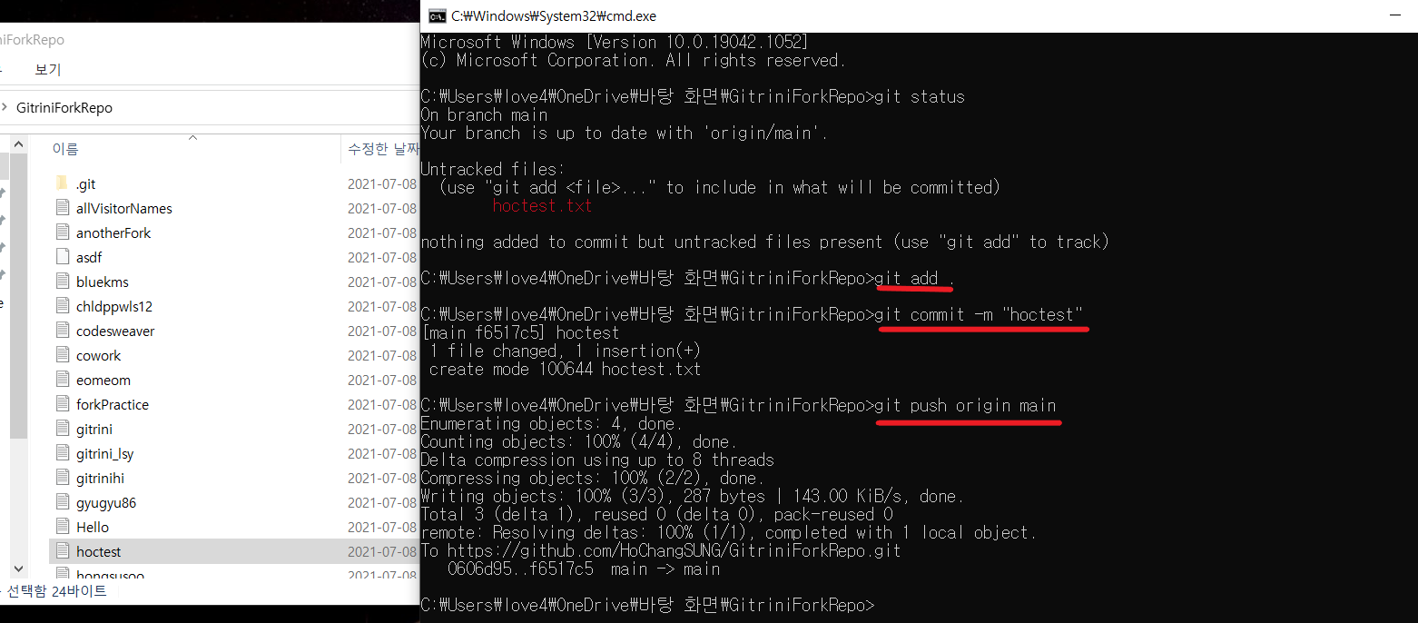 내 깃헙 레포지토리에만 push된 것 확인 가능