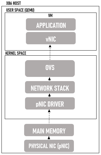 우선 PCI pass-through가 없는 상태에서의 패킷 플로우를 살펴보자.