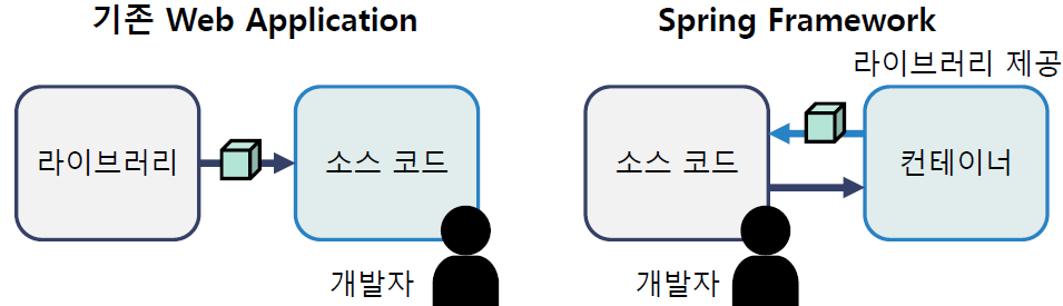 IoC(Inversion of Control)란, 프로그램을 구동하는데 필요한 객체에 대한 생성, 변경 등의 관리를 프로그램을 개발하는 사람이 아닌 프로그램을 구동하는 컨테이너에서 직접 관리하는 것을 말한다. 스프링은 IoC 구조를 통해 구동 시 필요한 객체의 생성부터 생명주기까지 해당 객체에 대한 관리를 직접 수행한다.
