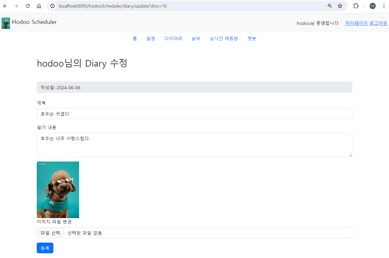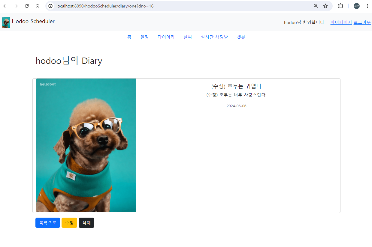 일기장의 마지막 부분인 '수정' 및 '삭제'를 살펴보자.