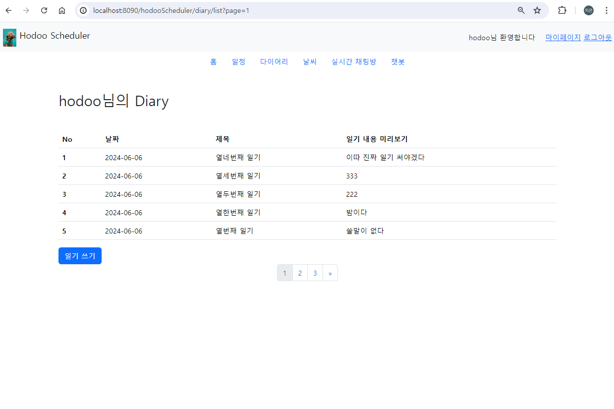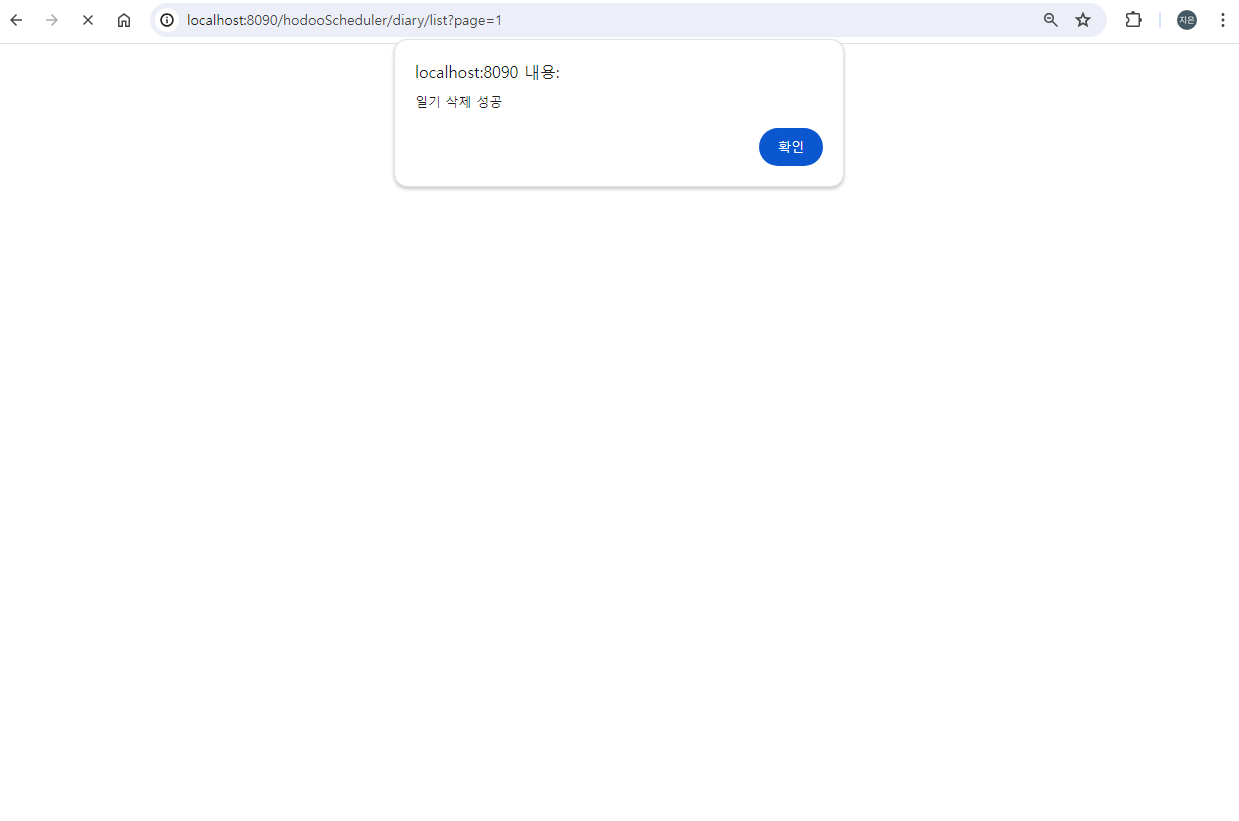 이번엔 삭제 버튼을 눌러 일기 삭제를 했다.