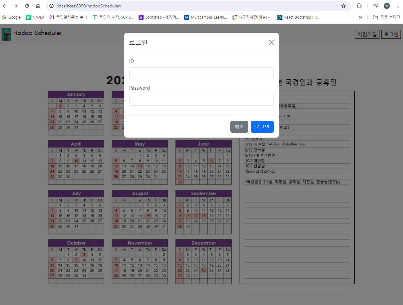 다음은 호두 스케쥴러(Hodoo Scheduler)의 회원가입 / 로그인 부분이다.