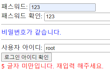 패스워드 확인: <input type="text" id="pw2"> <br>