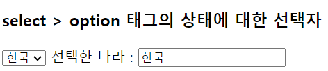 <label>선택한 나라 : </label><input type="text" id="result" />