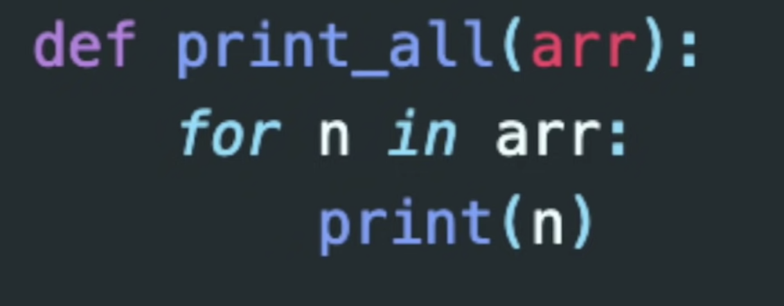 - 각각을 프린트하는 함수 => for문으로 하나씩 돌려줌 => 선형검색과 비슷