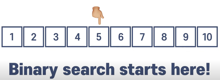 선형검색과 달리 이진검색에서는 index 0부터(처음부터) 검색하지 않음