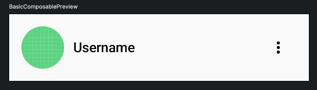 Row는 각 요소를 좌우로 나란히 정렬할 수 있으며, verticalAlignment = Alignment.CenterVertically를 통해 수직 정렬도 함께 지정할 수 있습니다.Text는 weight(1f)를 설정하여 남은 공간을 채우도록 했습니다.clip(CircleShape)을 통해 원형으로 표시되며, 오른쪽에는 메뉴 아이콘 버튼이 위치합니다.IconButton은 별도의 액션 버튼이나 메뉴용 아이콘 등을 배치할 때 활용됩니다.📌 학습 포인트
