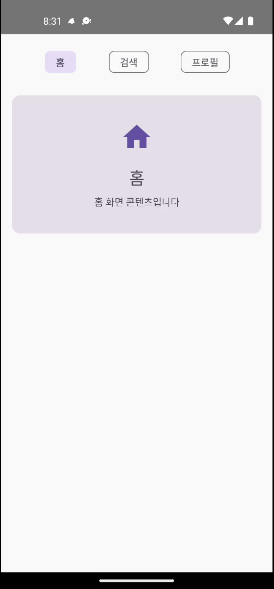 0 -> TabContent("홈", "홈 화면 콘텐츠입니다", Icons.Default.Home)