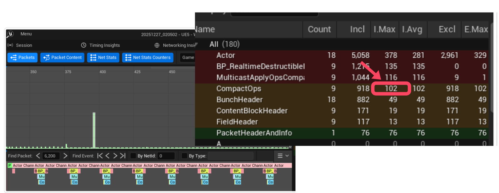 하지만 문제가 하나 더 있습니다. 위에 네트워크 인사이트 사진을 보면은 중간중간 ActorChannel사이가 비어있는 것을 확인 해볼 수 있을 것입니다.