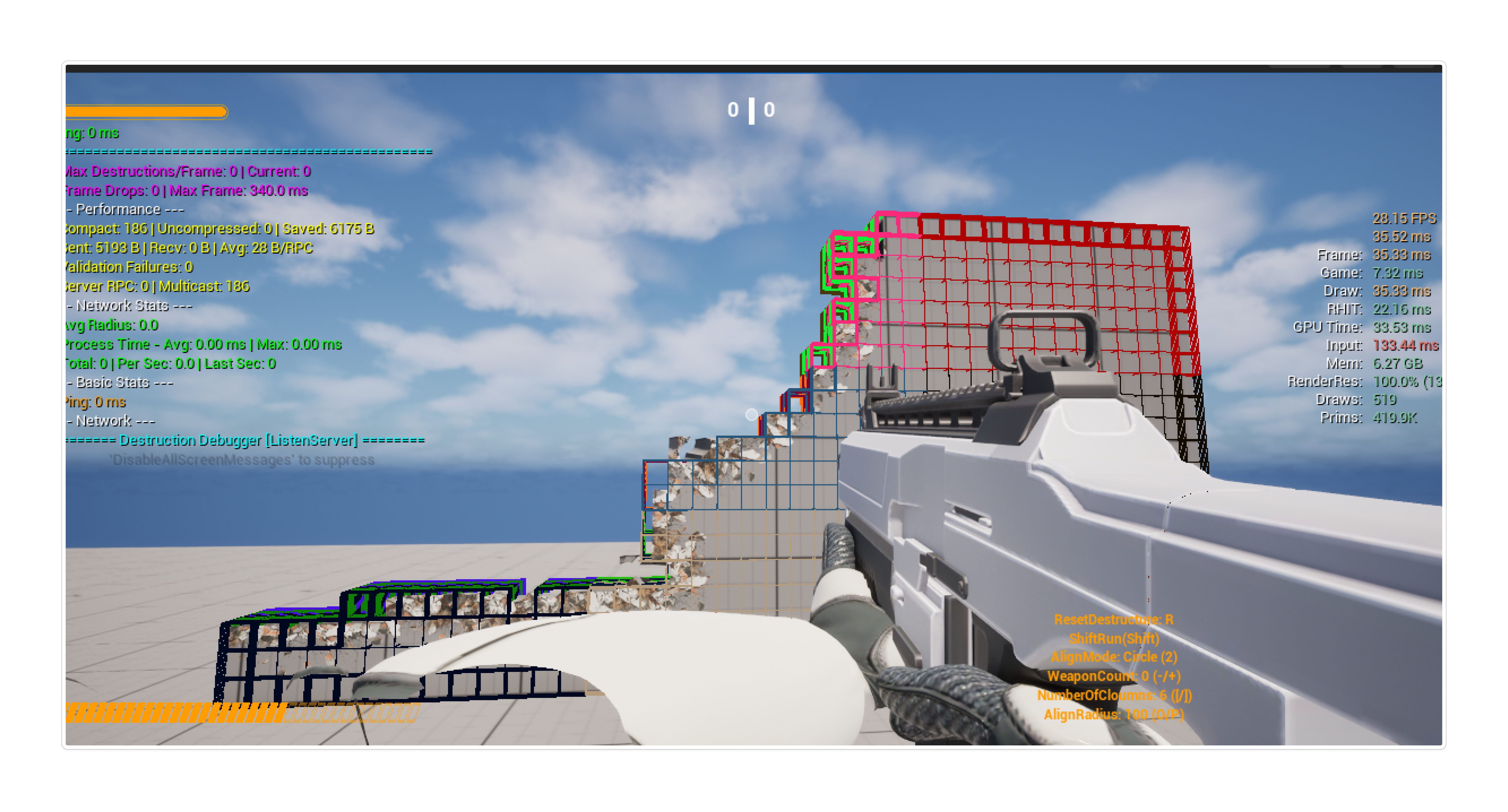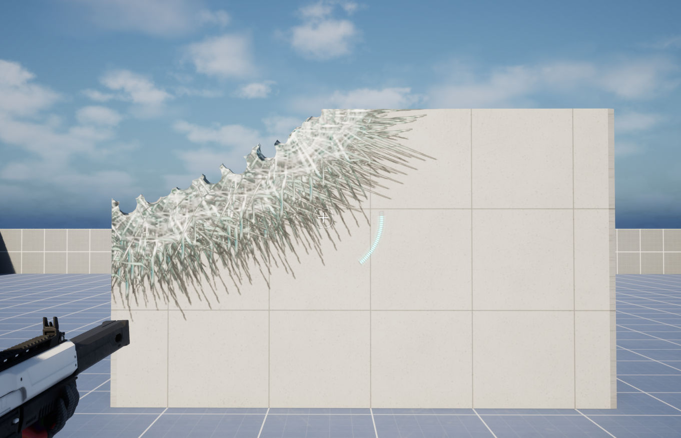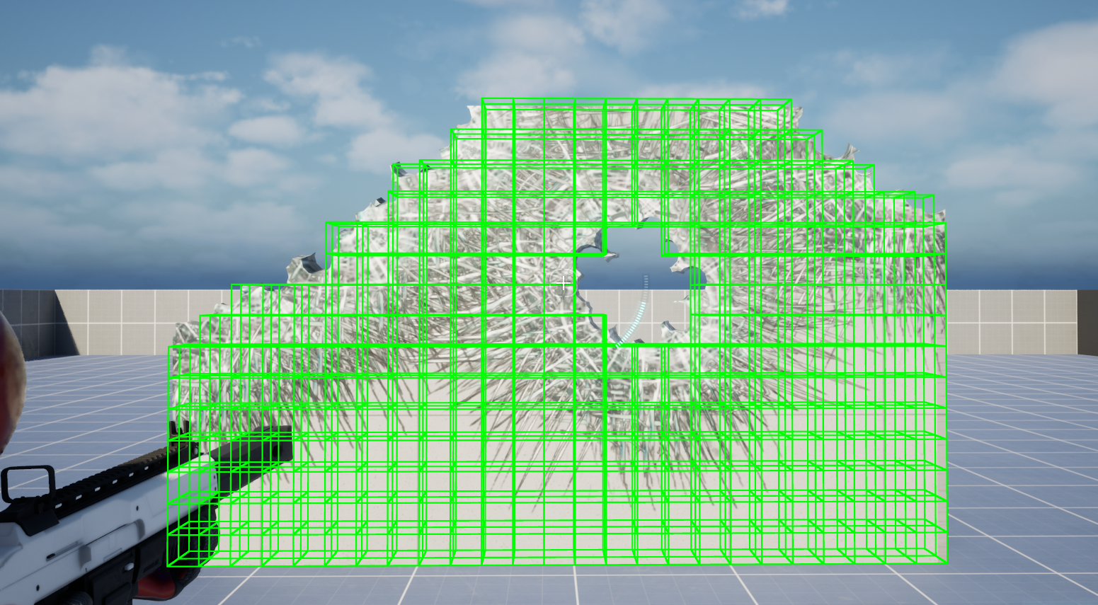 RealTimeDestructibleMesh는 이미 Grid Cell System을 가지고 있습니다. 메쉬 전체가 3D 격자(Grid)로 분할되어 있고, 각 셀(Cell)마다 "존재/파괴" 상태를 알고 있습니다.
