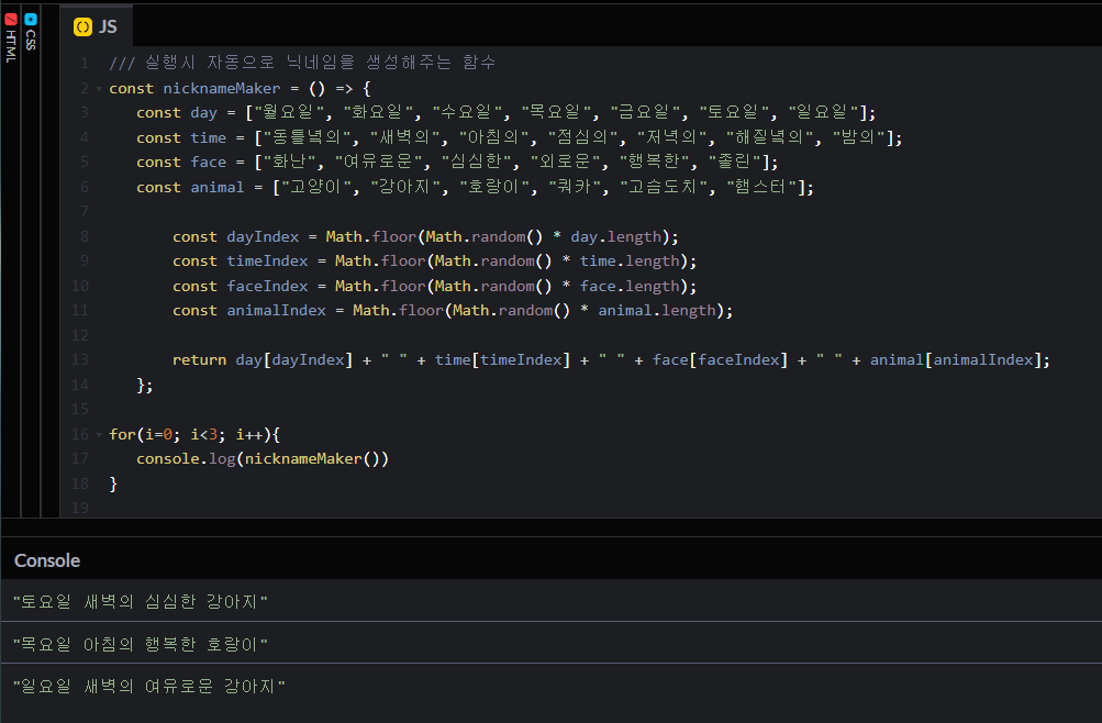 이렇게 랜덤 닉네임 생성기 완성!