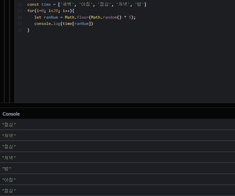 그 난수를 배열의 인덱스에 넣어버리면 계속해서 다른 문자열이 튀어나오게 할 수 있다!