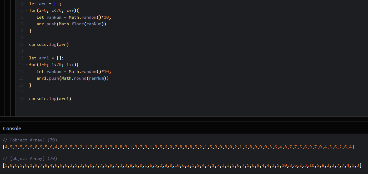floor에 비해 round로 만들어 낸 난수에는 10이 출력 되는 경우가 보인다.