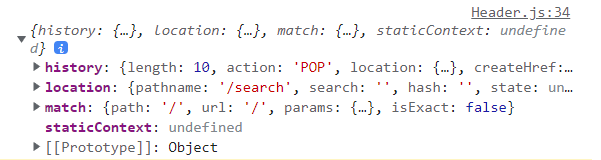 Header.js 는 Route의 경로로 지정되있지 않기 때문에 props로 받아올 수 없다. 그래서 withRouter로 감싸서 props를 받아와야 한다.