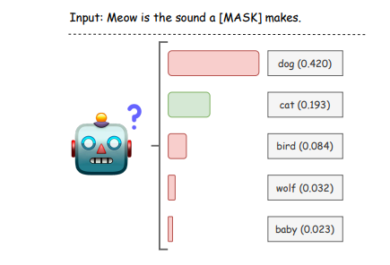 BERT 모델이 “meow”를 듣고, 마스킹된 단어에 대해 예측한 확률 분포