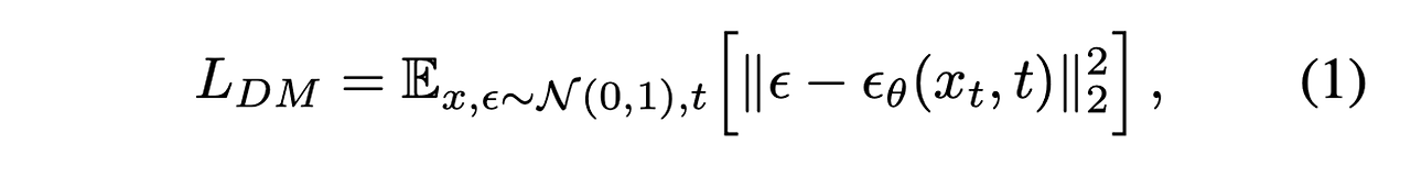 Diffusion Model은 점진적으로 Denoising을 해가며 의 데이터 분포를 학습하도록 디자인된 확률 모델입니다(고정된 길이의 Marcov Chain 역과정(reverse process)로 학습합니다). 이미지 합성에서 성능이 좋은 대부분의 모델들은 에 대한 ELBO(변분 하한;Variational Lower Bound)를 재가중치하여 변형하여 사용하였으며 이는 Denoising score-matching과 유사합니다. 결국 이 모델들은 동일한 가중치를 가지는 Denoising AutoEncoder의 시퀀스로 해석될 수 있으며 이는 로 표현됩니다.