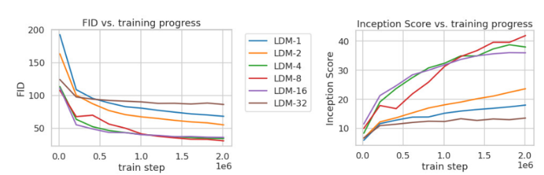 LDM-4부터 LDM-16까지는 효율성과 perceptual하게 충실한 결과 사이에서 적절한 균형을 유지합니다.