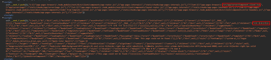 직렬화된 데이터를 보면 서버 컴포넌트의 정보가 있고 클라이언트 컴포넌트는 직렬화 데이터 내에 참조형으로 표시되어 있는 것도 확인할 수 있다.