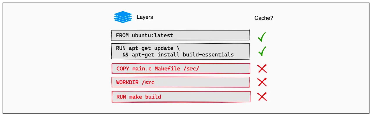 하지만, 특정 레이어가 변경되었다면 그 이후 레이어도 모두 재빌드가 필요하다. 아래 그림을 참고하자.
