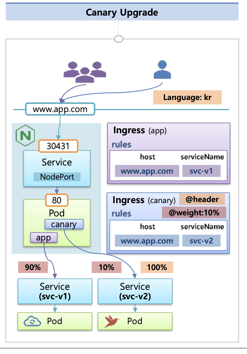 새로운 버전을 테스트 및 배포할 때 사용된다.