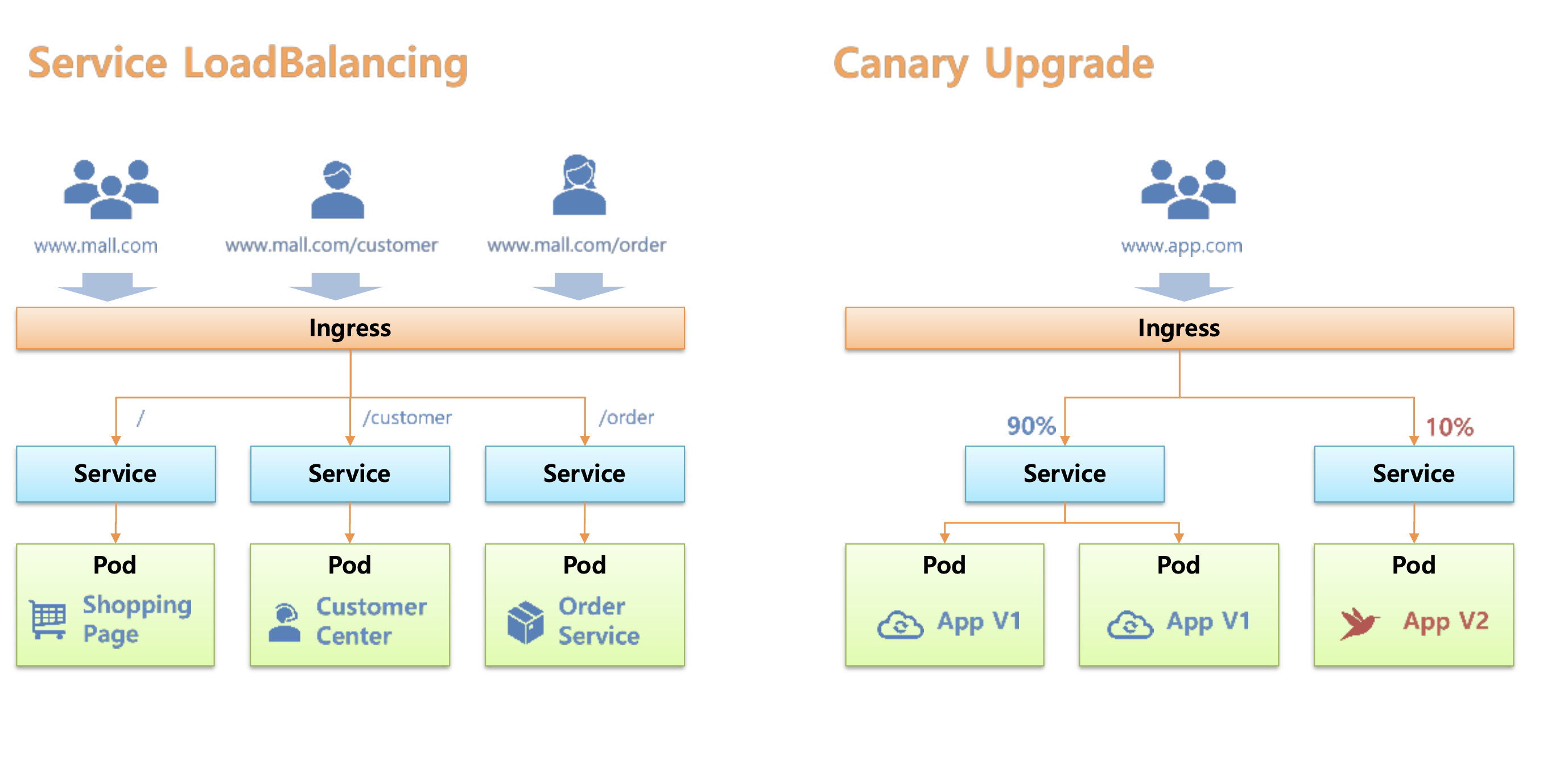 각각의 Pod마다 기능별로 배포가 되어있었을 때에 기존에는 Path에 따라 서비스로 연결을 해줘야 했다, 하지만 Ingress를 통해 domain에 따라 각각의 서비스에 연결이 가능하게 되었다.