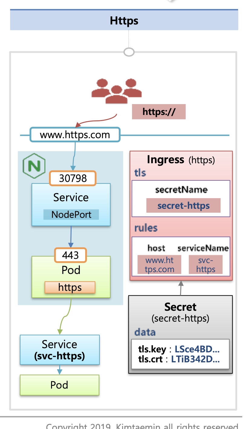 위의 그림처럼 도메인의 path를 통해 ingress 컨트롤러가 rule에 지정된 서비스로 연결을 시켜준다.