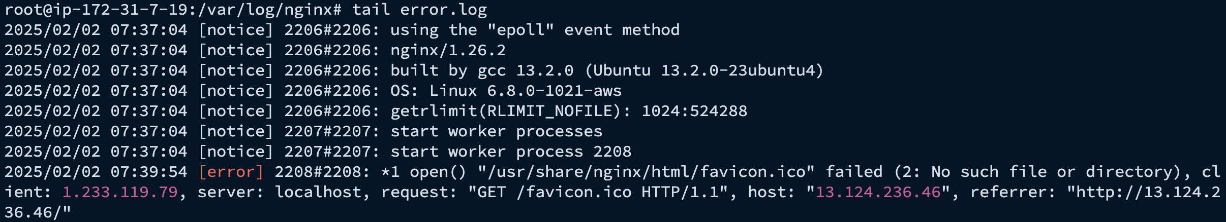 리눅스에서는 콘솔창 역할을 해주는 것이 로그 파일이다. 이 로그파일을 확인해 Nginx가 잘 작동하고 있는지, 문제가 생겼는지를 확인해 조치를 취할 수 있다.