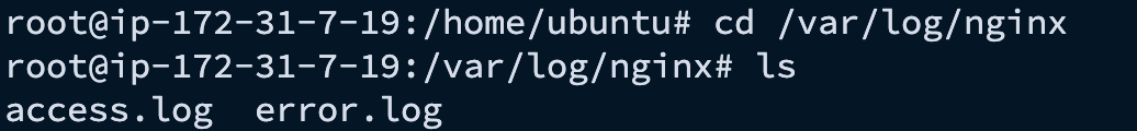/var/log/nginx 경로로 이동하게 되면 2개의 로그 파일이 존재하는 것을 확인할 수 있다.