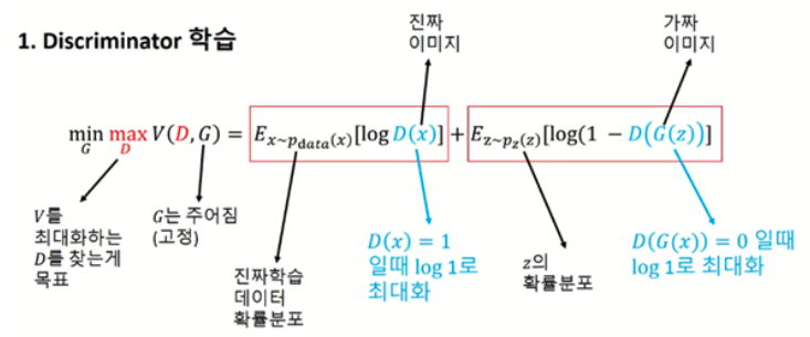 -> 진짜 이미지를 예측한 값 + (1 - 가짜 이미지를 예측한 값)