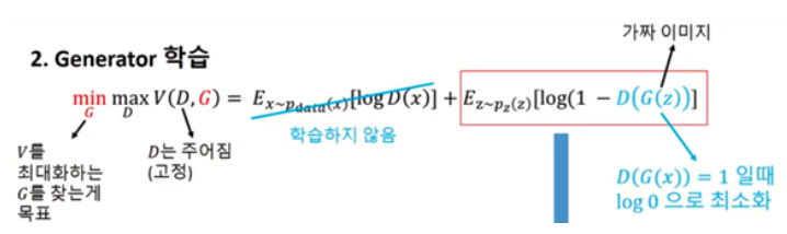 E[log(1-D(G(z)))] -> G() 모델의 loss함수