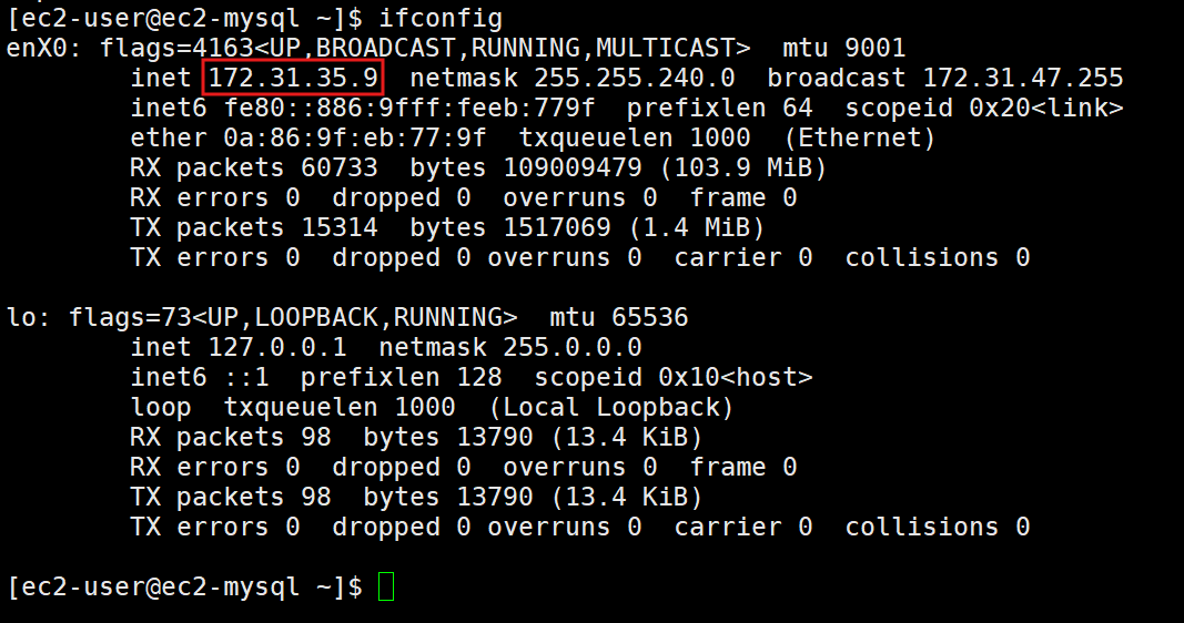 mysql -u ec2 -h 172.31.35.9 -P 3306 -p