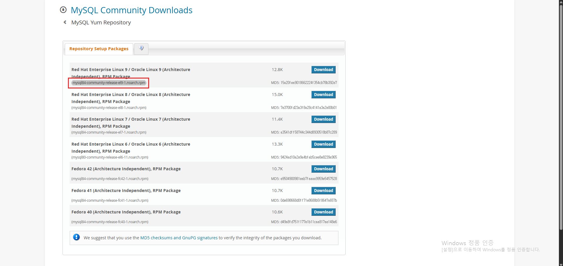서버 shell에서 아래 명령어 실행하면 mysql 레파지토리가 설치됨.