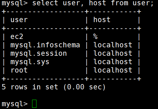 create user 'ec2'@'%' identified by 'Qwer1234!';
