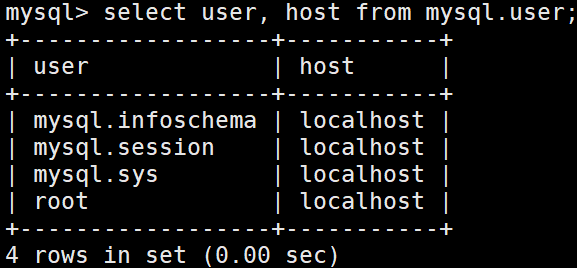 select user, host from mysql.user;