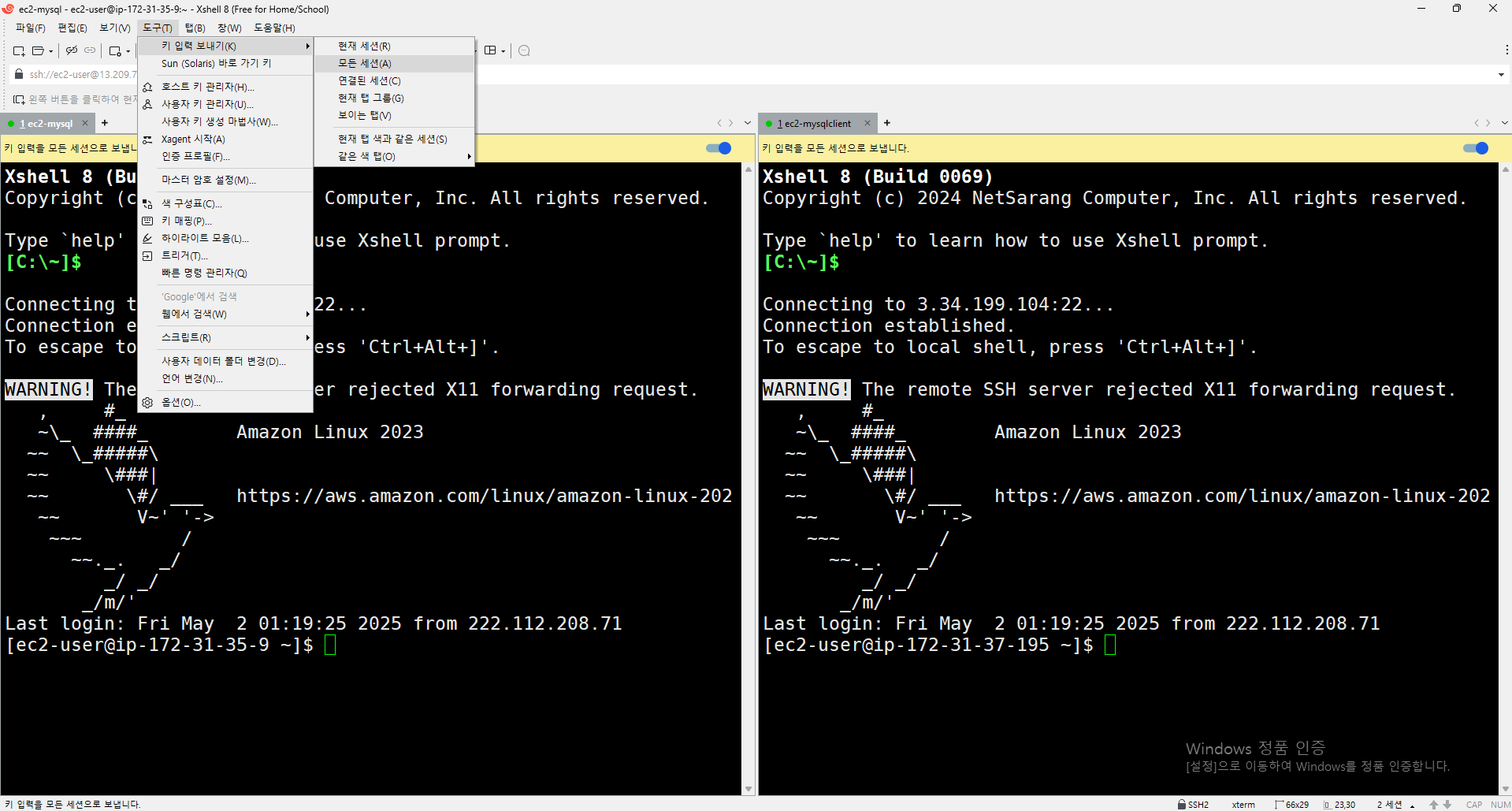 도구 - 키 입력 보내기 - 모든 세션