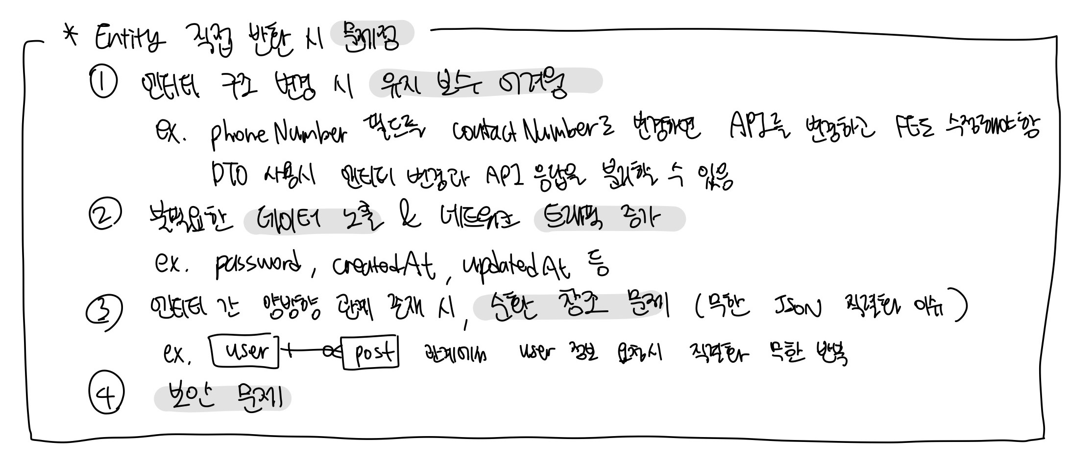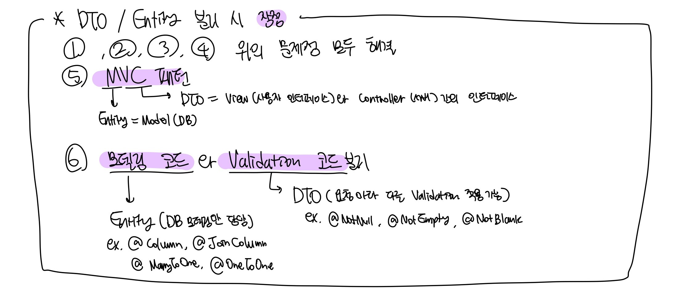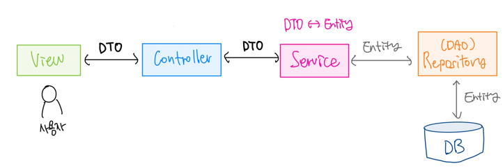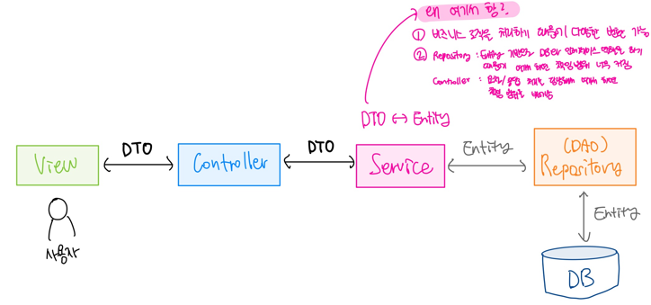 ② Repository : Entity 기반으로 DB와의 인터페이스 역할을 하기때문에 여기서 하면 책임 범위가 너무 커짐