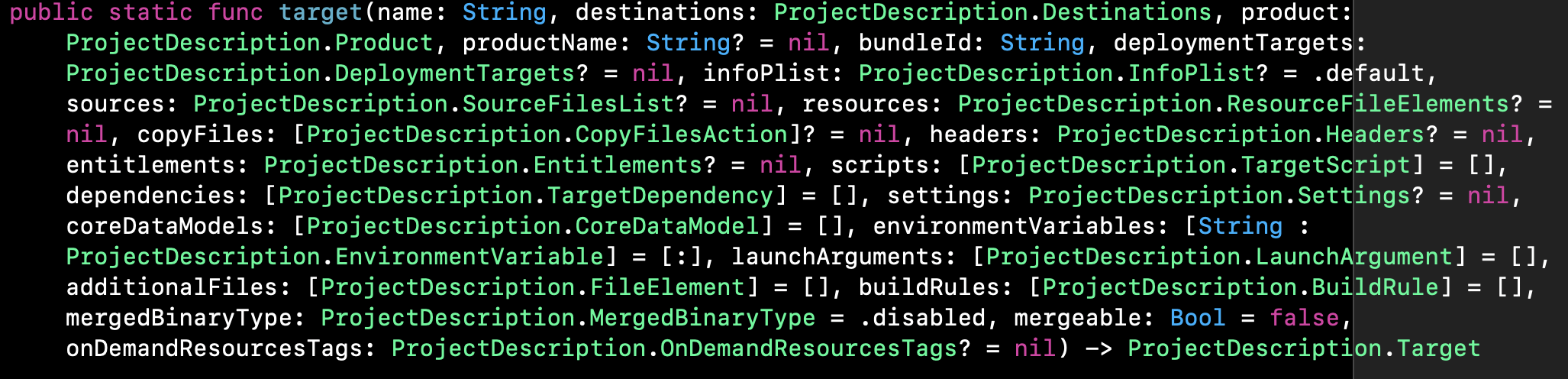 resources: Tuist가 Resources/ 의 리소스들을 자동으로 코드화화면, 그때 이 리소스들이 어디에 있는지에 대한 경로를 의미한다. 안에 문자열로 경로를 입력해도 된다.