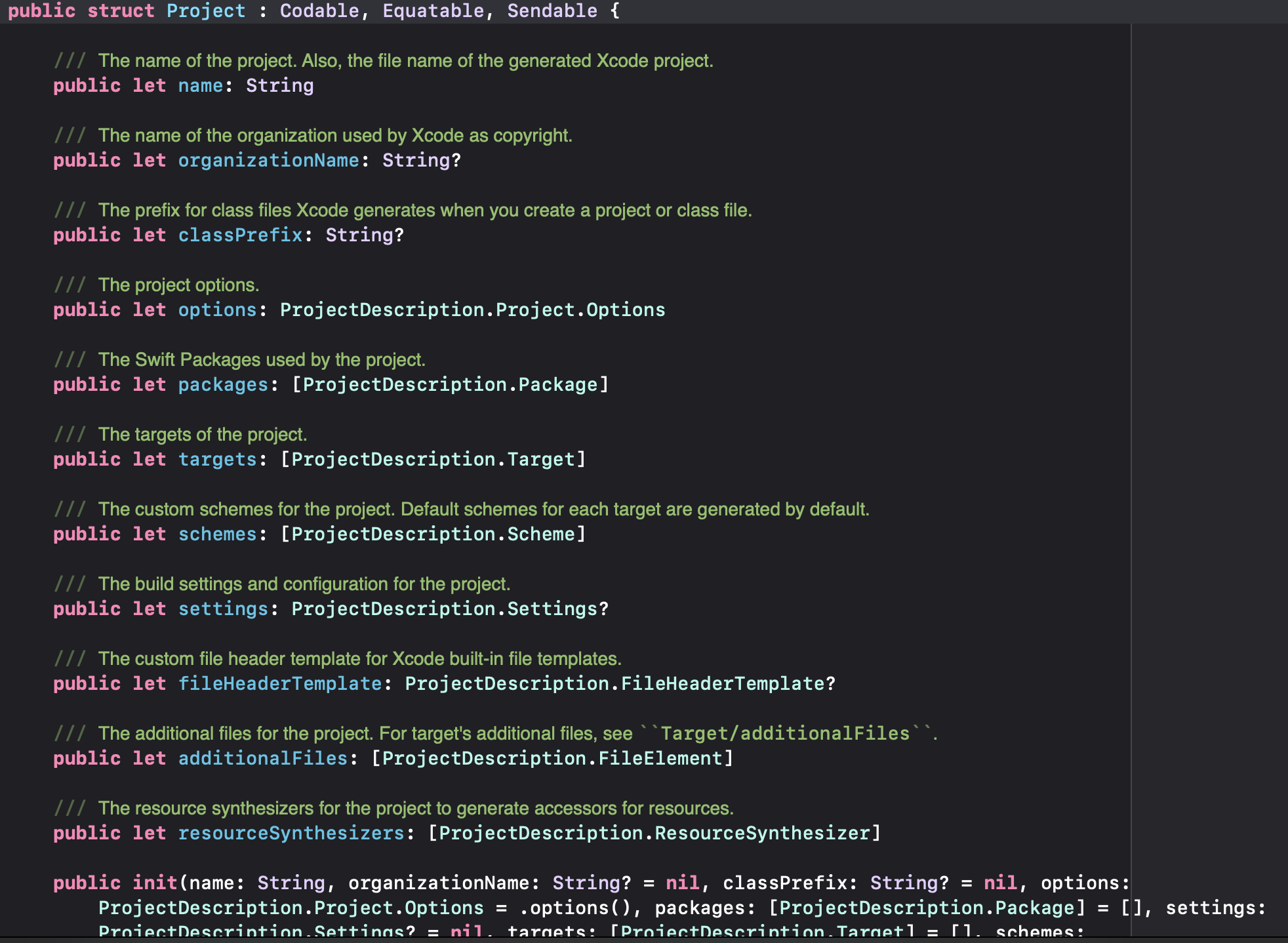 options: Tuist가 xcodeproj 파일을 만들 때의 옵션을 설정해줄 수 있다.