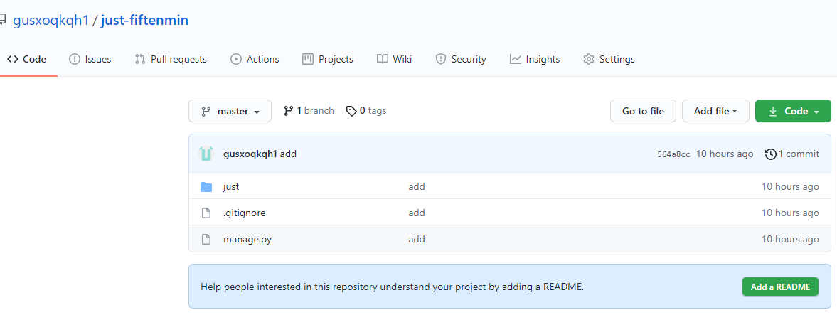- git add . git commit , git push 하여 repo에 gitignore가 잘 되었나 확인