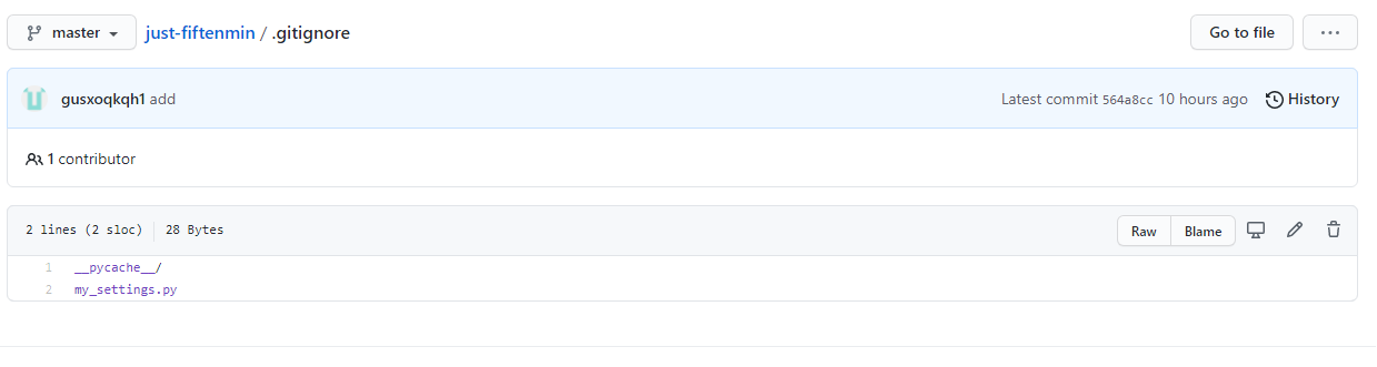 - git rm --cached 'gitignore안에 있는 파일명' ( my_settings.py)