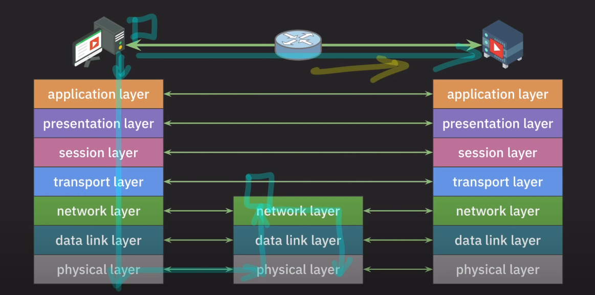 - 2층(데이터 링크)에는 이 둘 사이에 데이터를 어떻게 보내줄 지 2층(데이터 링크)헤더에 담아주고 ,트레일러를 담아준다.
