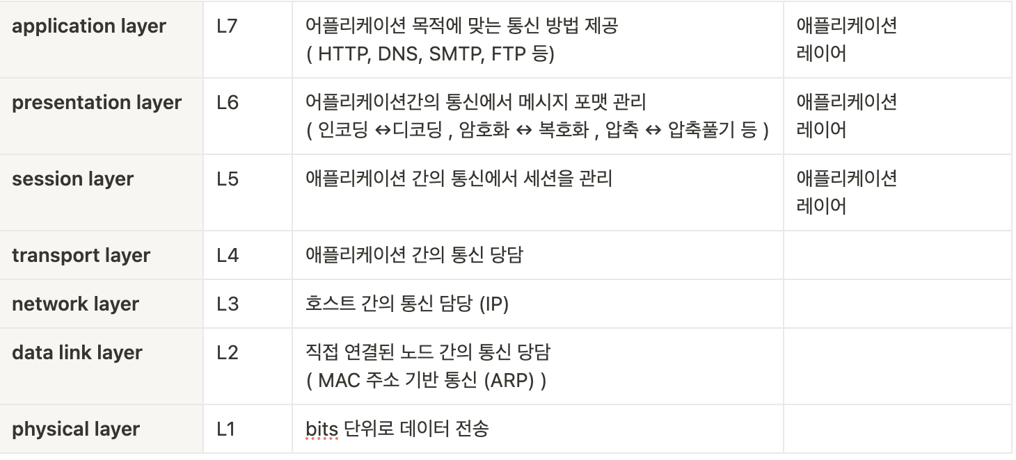- 어플리케이션 + 프레센테이션 + 세션 ⇒ 어플리케이션 층으로 통일