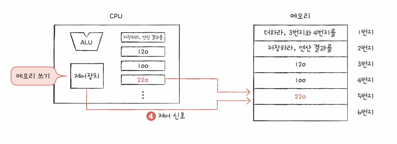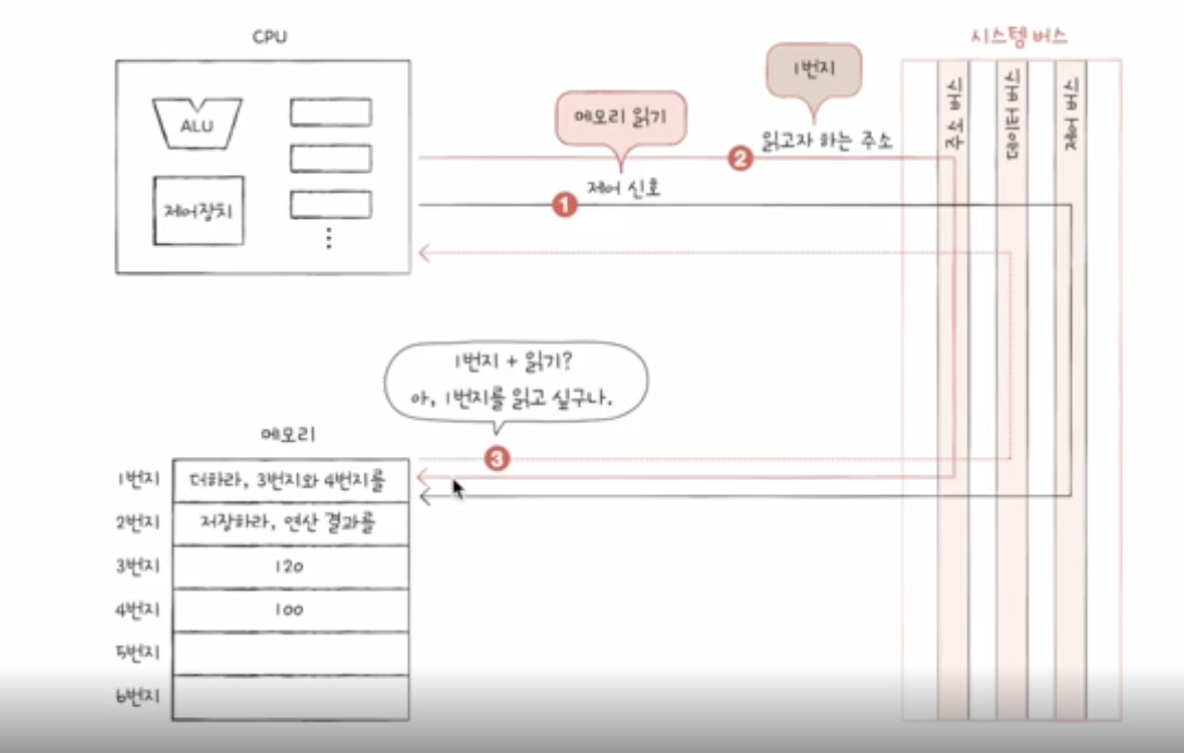 - 제어신호 : 컴퓨터 부품들을 관리하고 작동시키기 위한 전시 신호